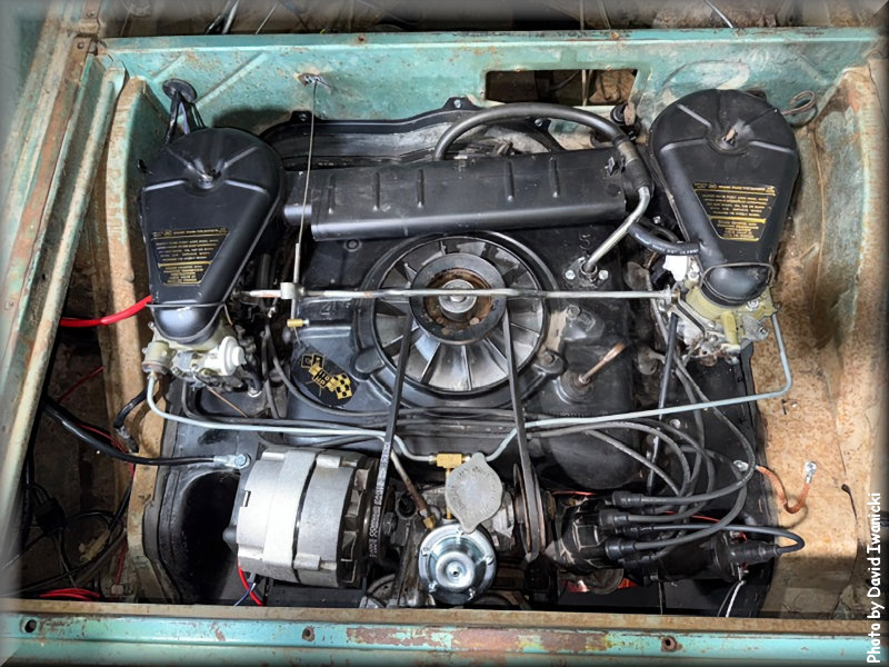The engine is currently out of the vehicle and is presumed to be the one that Greg overhauled years ago because the block code indicates a '65 FC, 110 HP, with automatic transmission. I’m going to pull the rest of the power pack because it needs a good cleaning and likely servicing, and also because I’m told it’s a lot safer to reinstall everything as a unit. Currently there are 93,491 miles on the odometer.